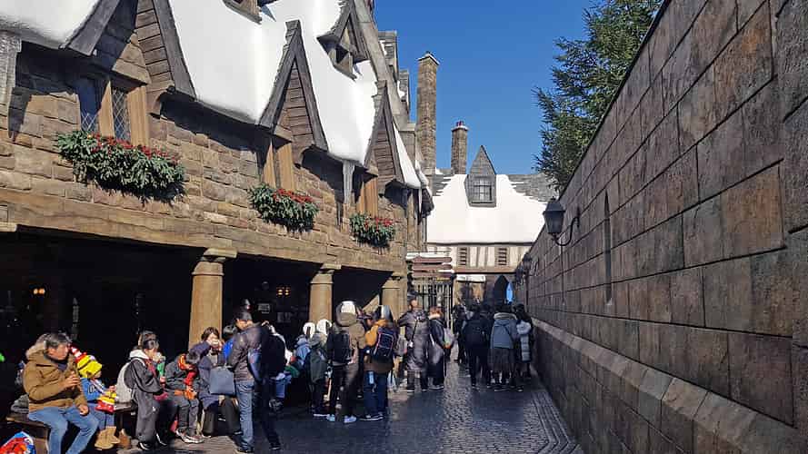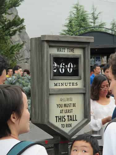 The ride lacks the single rider queue seen on the other versions, but does have the option of simply walking through the queue to take in the castle without riding.