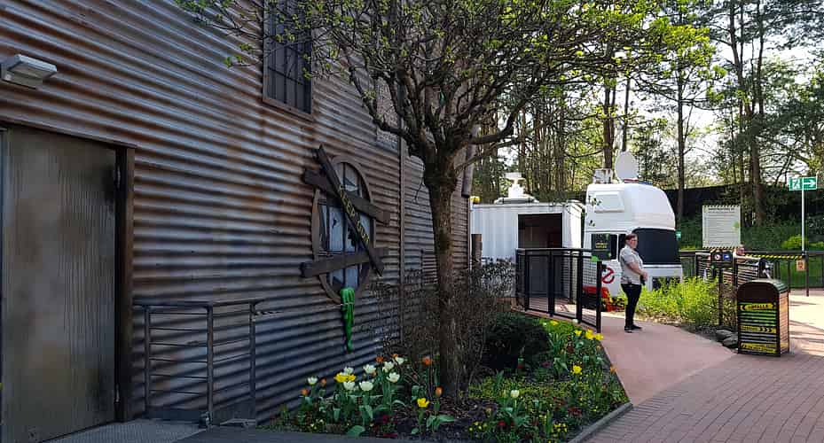 The ride is set in a warehouse that has been overtaken by ghosts.