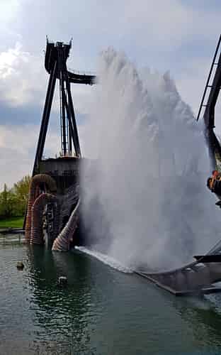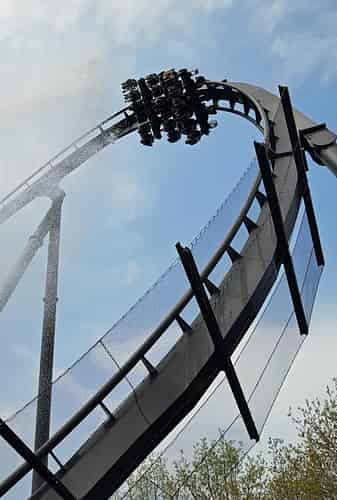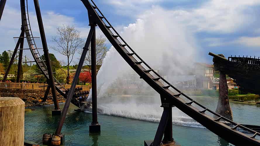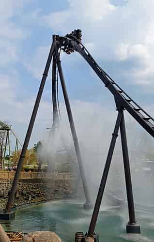 The water splash is another signature element on Dive Machine coasters.