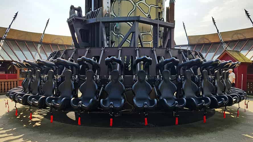 Guests are seated in a cabin that raises up the tower slowly whilst rotating. Unlike Scream you don't plummet back to earth however.