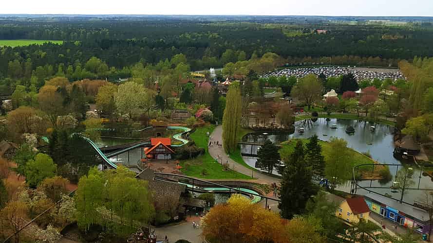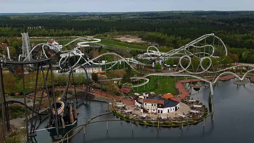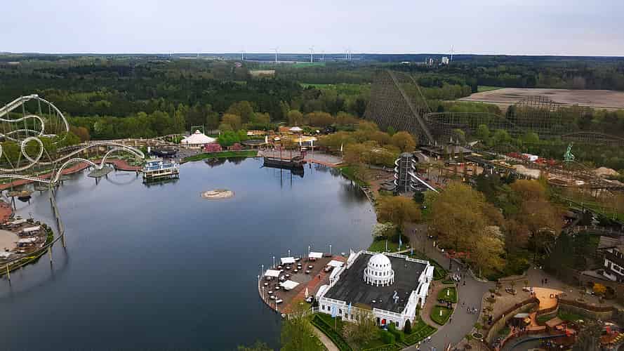 Heide Park, a park set on a lake.