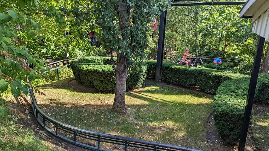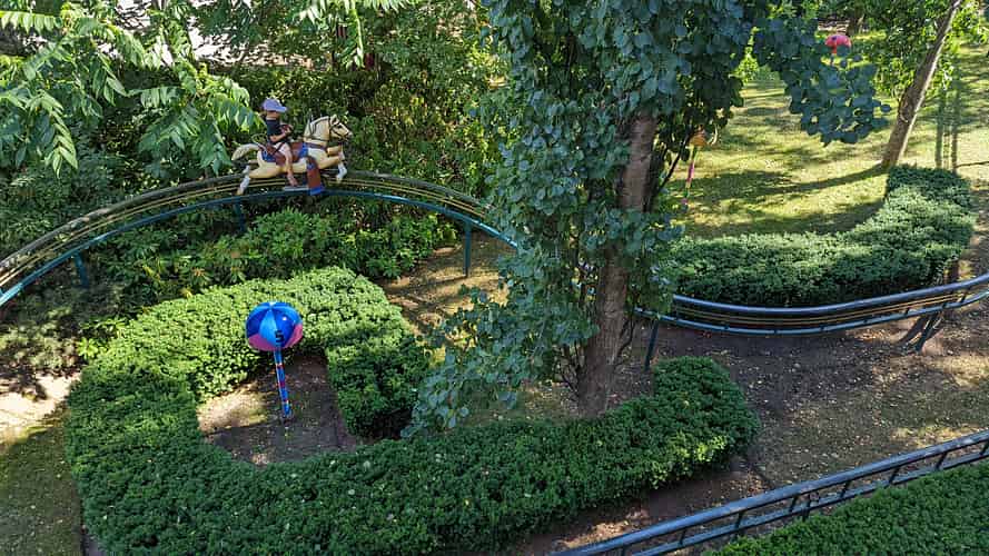 Hepparata is a monorail where kids can ride on a rocking fibreglass horse.