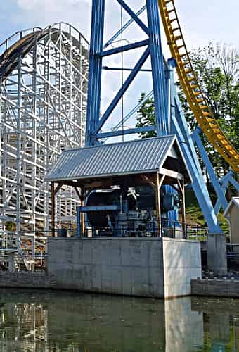 The brakes for Skyrush are high enough to clear the loading station of Comet, before the track drops down to the block brake and transfer track area.