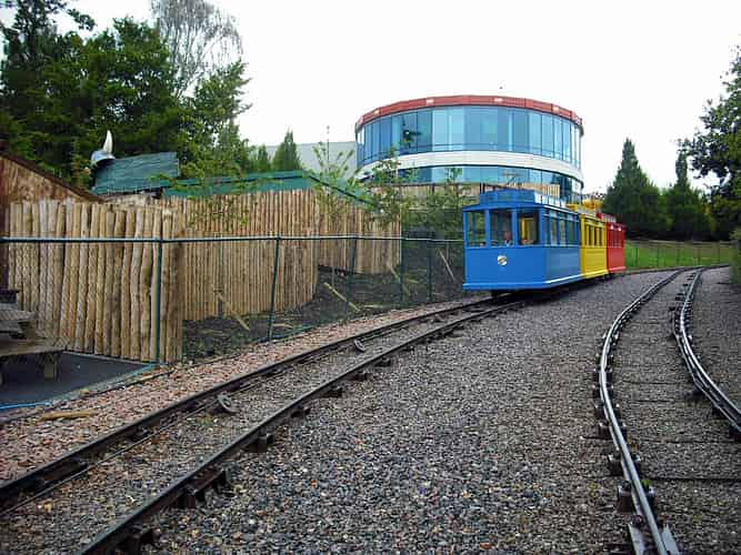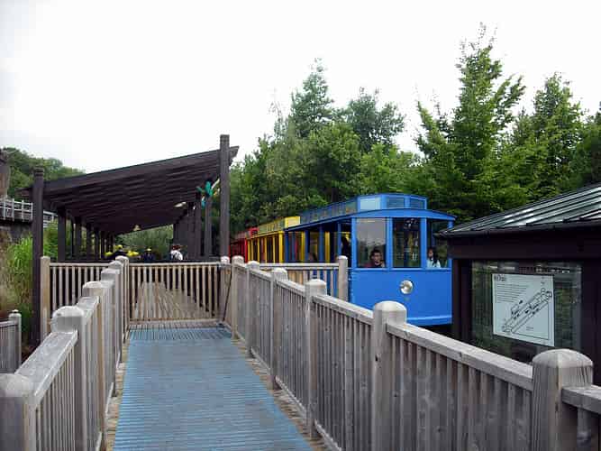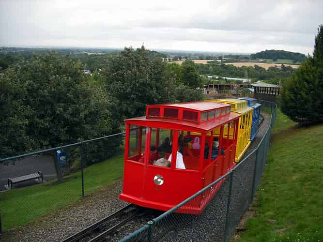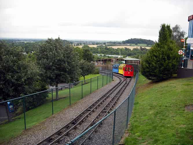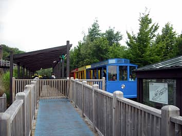 Legoland is set on a hillside, with the entrance at the top and the majority of the attractions at the base. The Hill Train moves people between the upper and lower areas.
