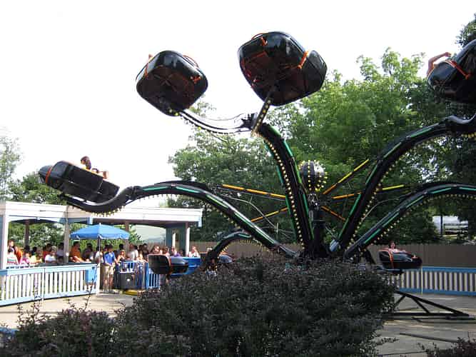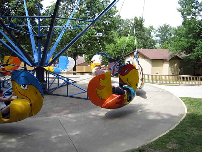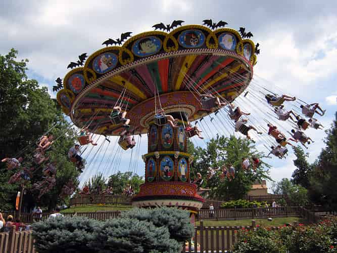 Eagle's Flight is an infamous 'flying scooter' attraction, where riders can control the swing of their 'aircraft' with the large rudder.
