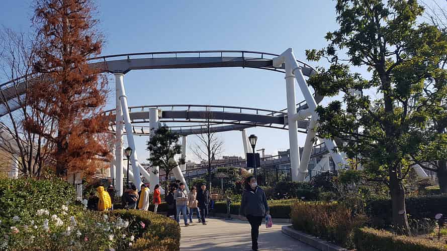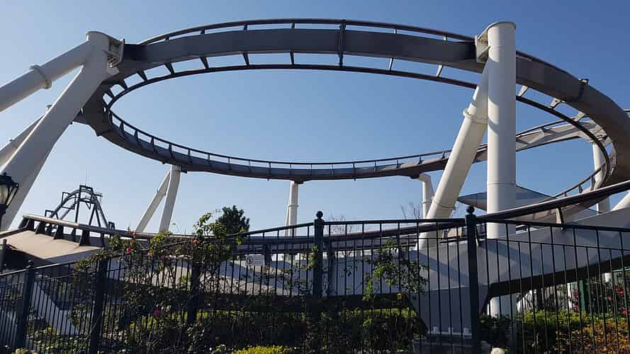 The ride has been craftily squeezed in between buildings.