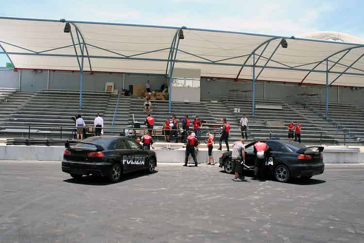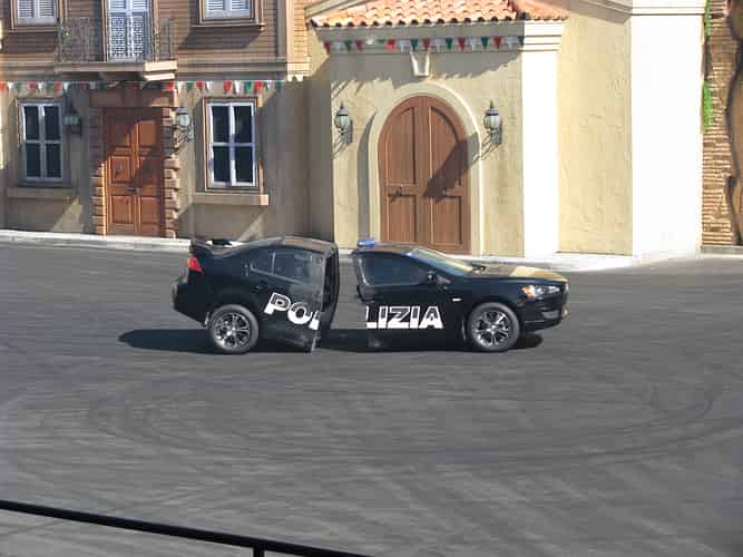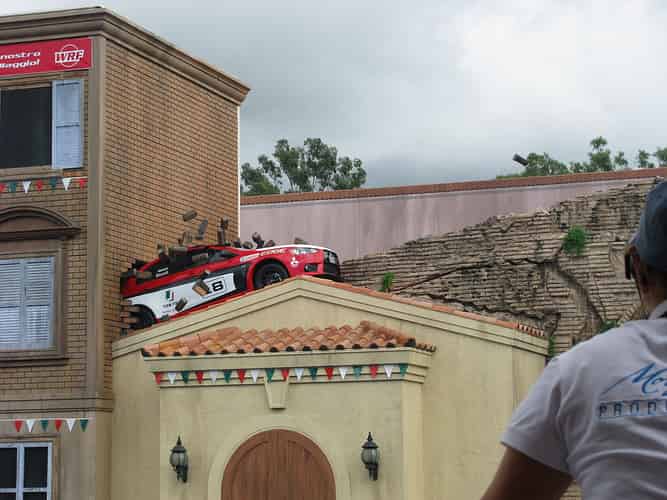 During wet weather Hollywood Stuntdriver runs a slightly tamer show because of the extra slippery arena.