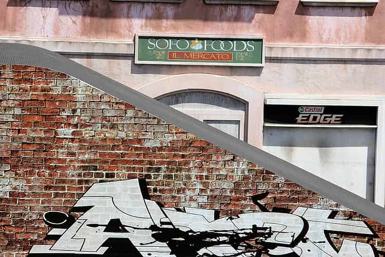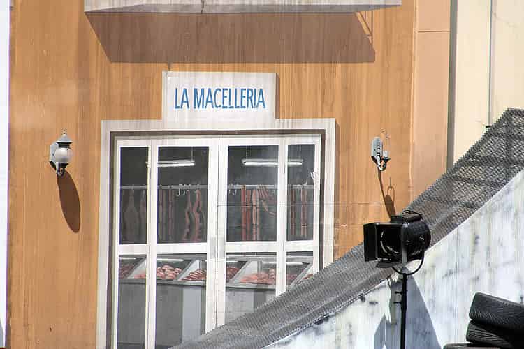 To be fair, La Marcelleria is practically blocked by this inexplicably placed ramp, so you can see why they wouldn't go to the trouble of painting the word 'Butcher' onto the sign to adapt it to the show.