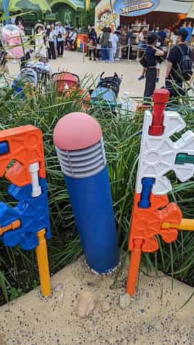 Light posts themed like pencils, complete with the ferrule.