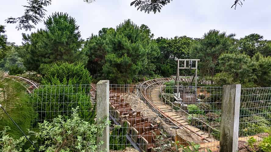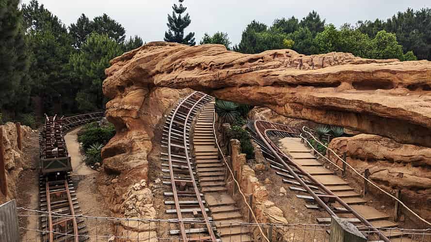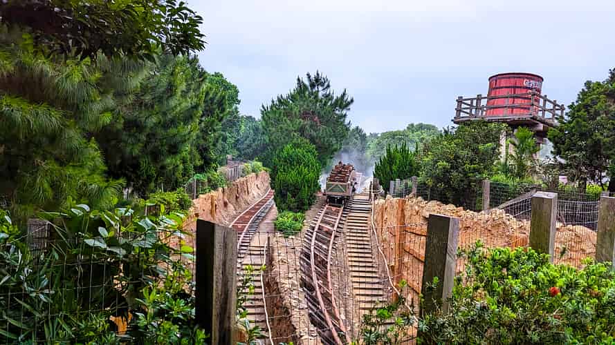 Big Grizzly Mountain is a mine train coaster heavily inspired by Big Thunder Mountain Railroad at Disneyland.