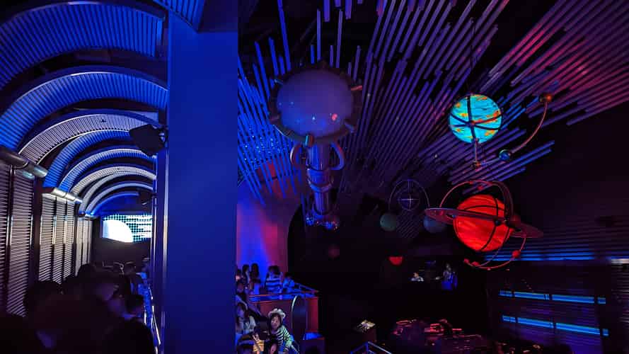 It's somewhat jarring having Star Wars against the classic Space Mountain theming.