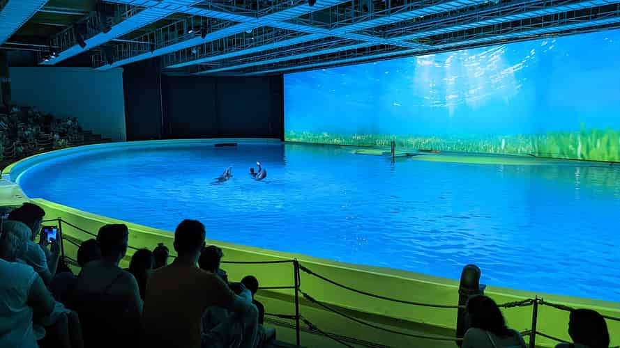 The rear of the Hope arena has a public dolphin aquarium.