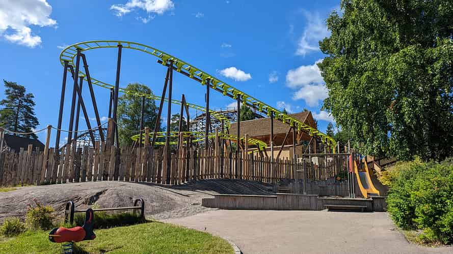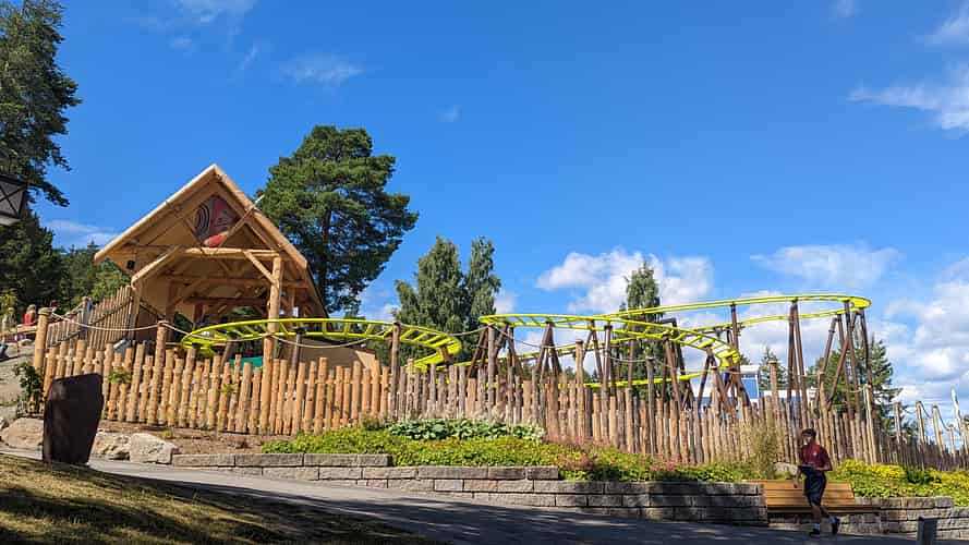 The theming feels strange. Ostensibly it's Polynesian, but it's difficult to escape the Nordic environment, with hard rock on the ground, pine posts and so on.