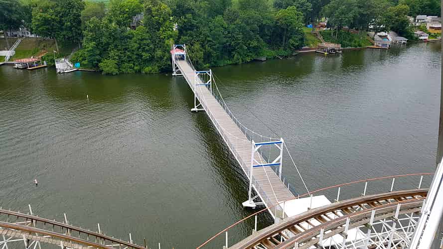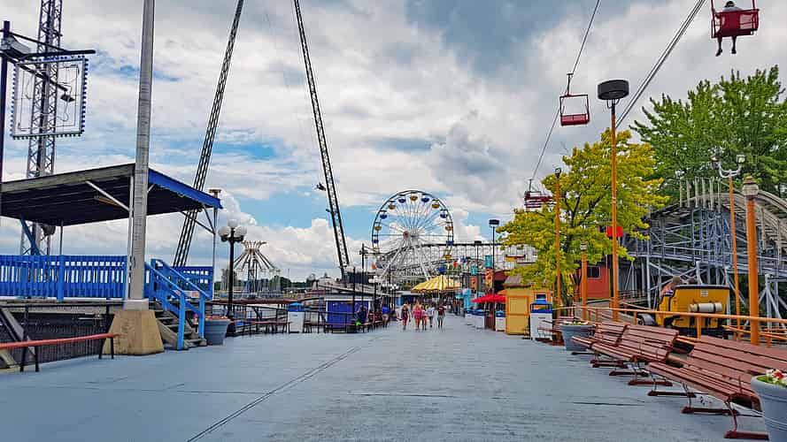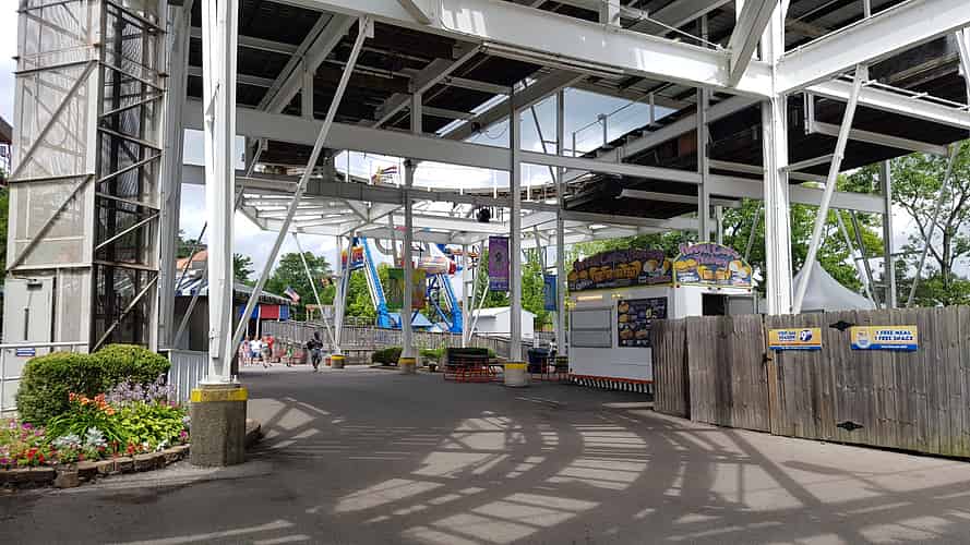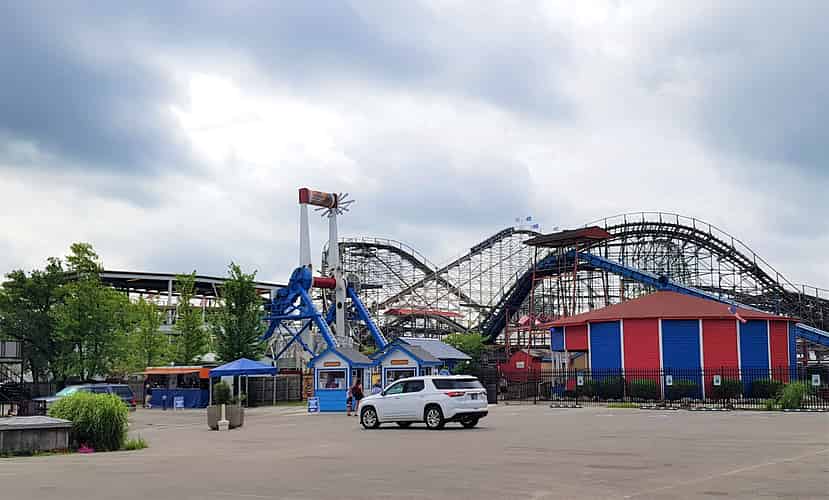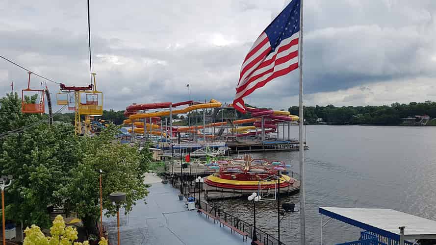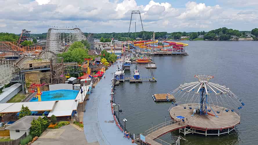 Onboard Skyride we can see Paratrooper and the Ideal Beach Water Slides.