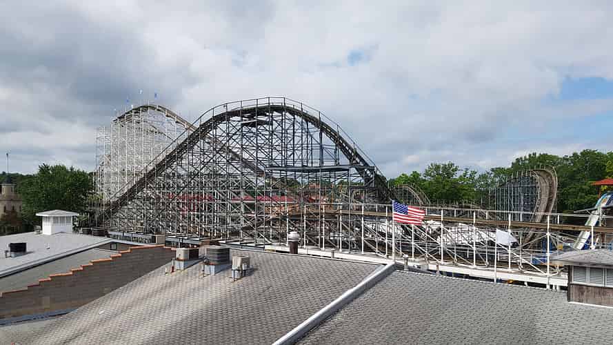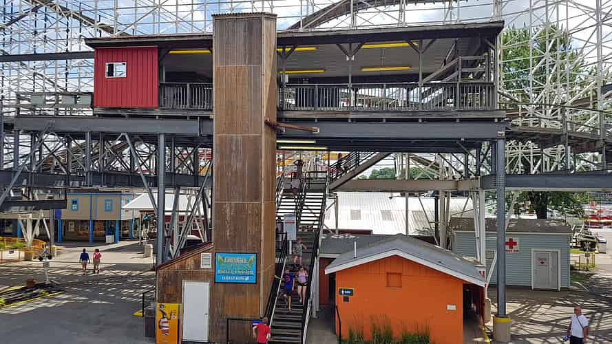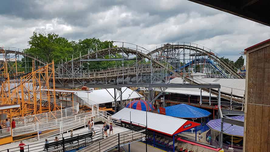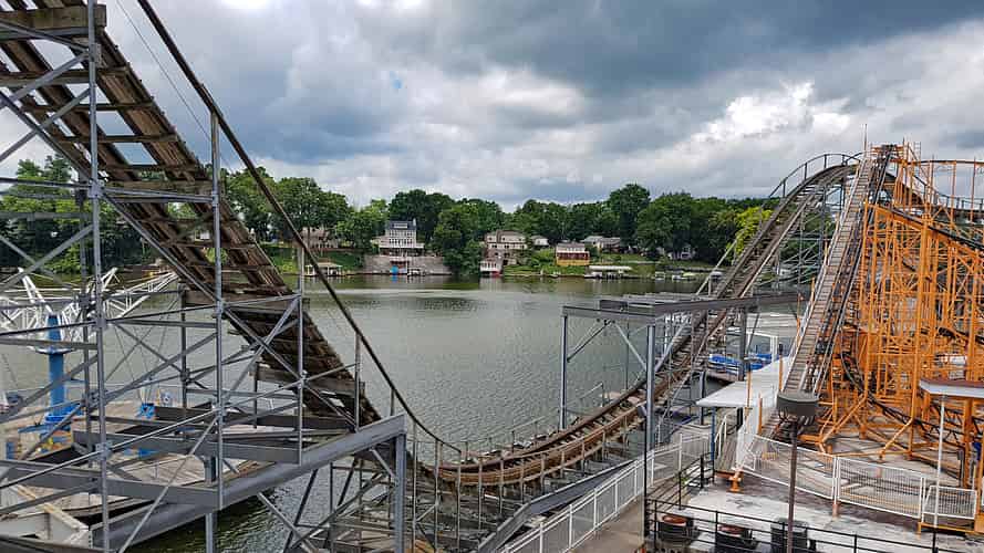 The lift hills for Cornball Express and Hoosier Hurricane are in opposing directions.