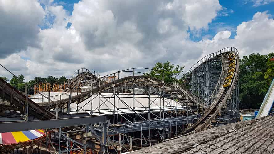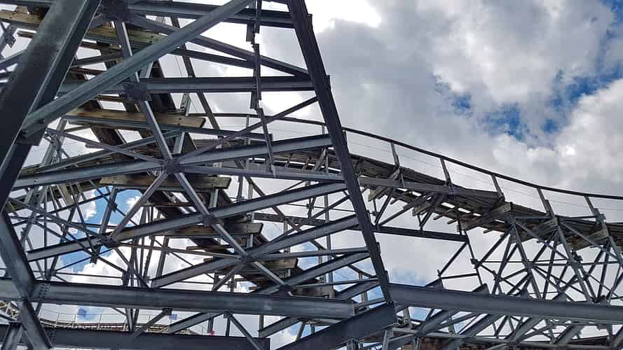 The ride is a hybrid structure, using a wooden track sitting on a steel structure.