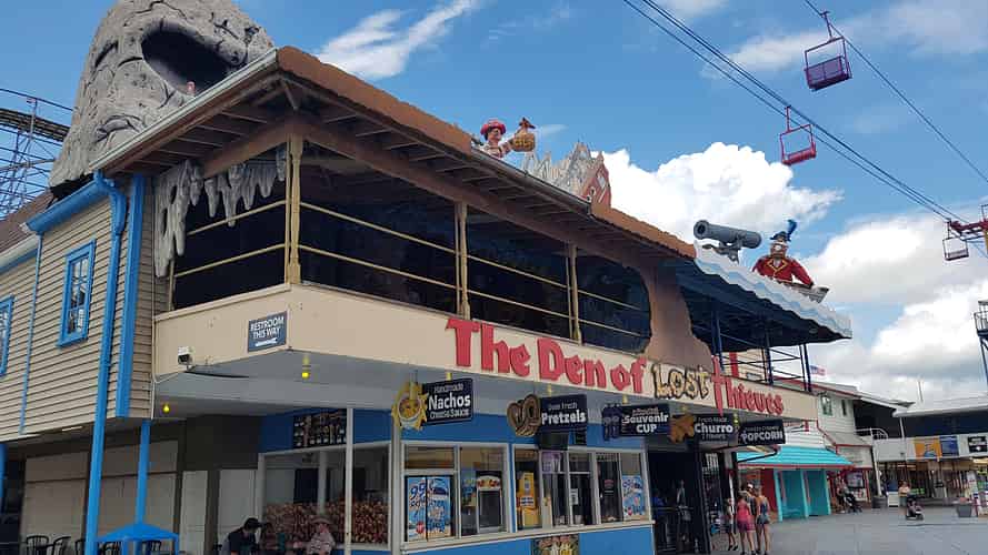 Tangled over other attractions is Cornball Express, a fairly compact wooden coaster.