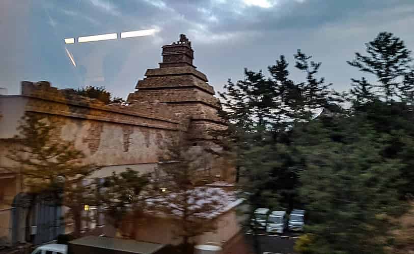 The rear of the ride building as viewed from the monorail.