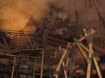 Much of the lenghty indoor queue is elaboratley themed to a newly discovered temple, deep in India.