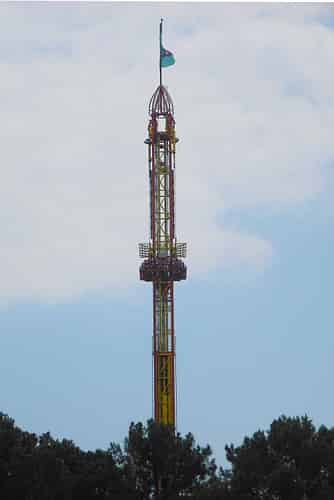 Free Fall is a decent sized drop tower, placed upon a hill that overlooks the park.