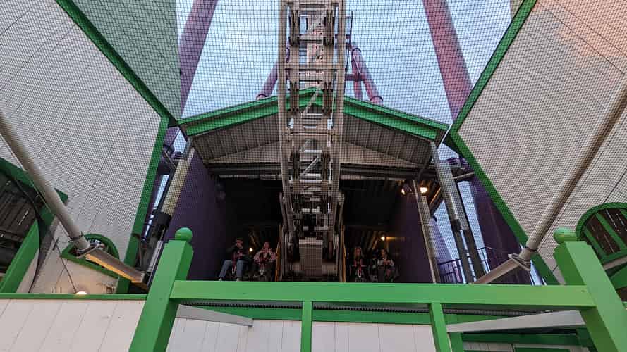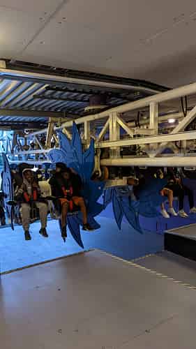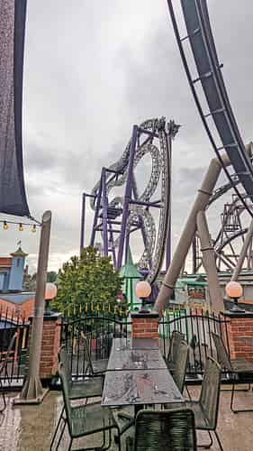A main pathway passes right under the ride, so you can sit there and watch the reactions of riders as they come in.