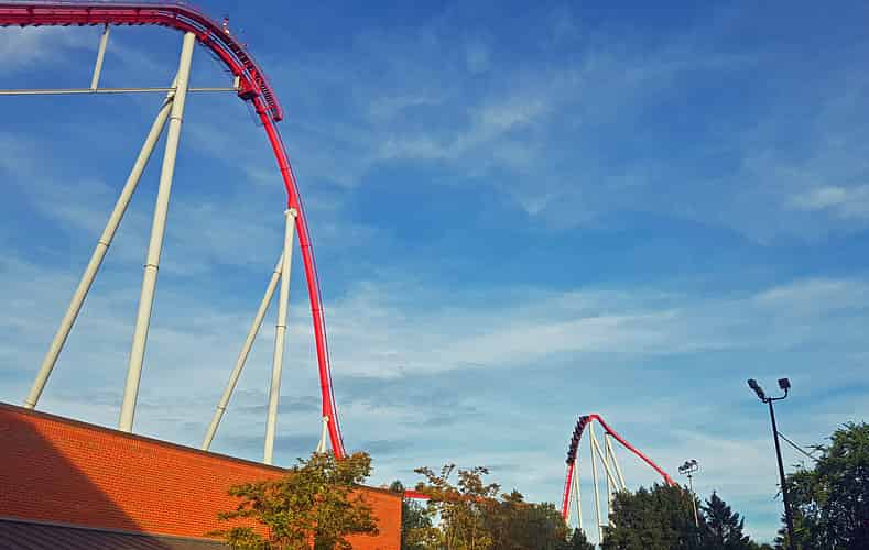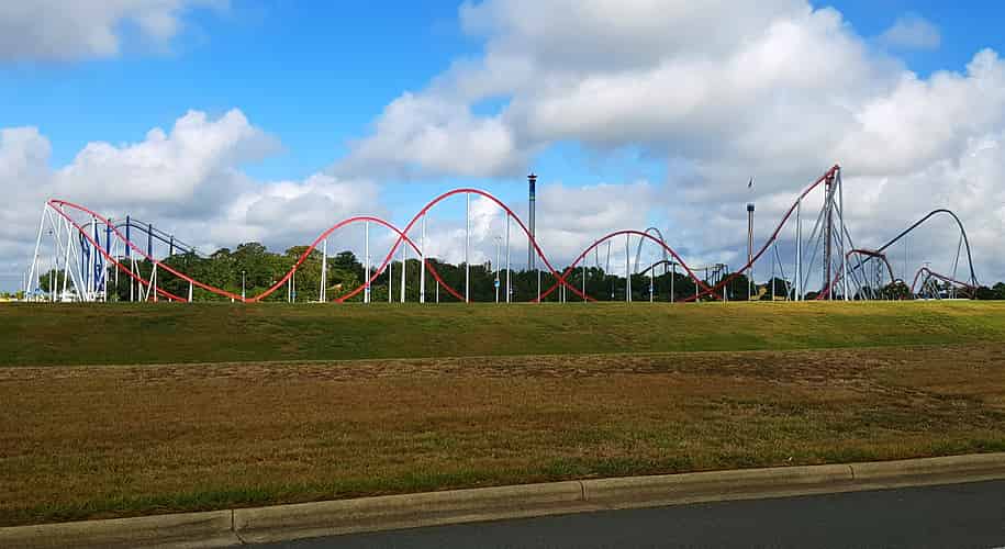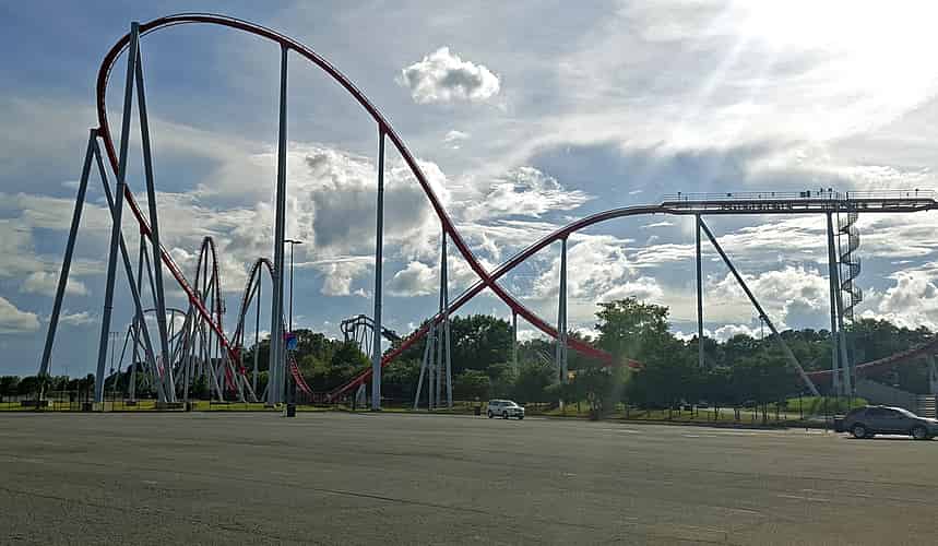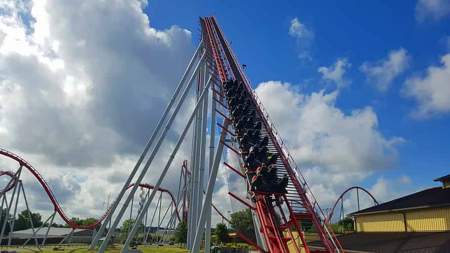 Intimidator is a hyper coaster, combining big hills with high speed. This was once the biggest coaster at Carowinds till the park decided to one up themselves.