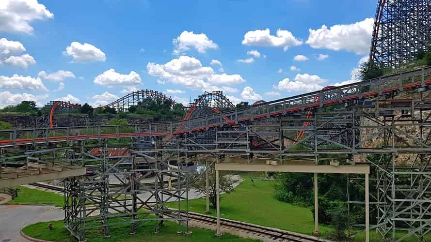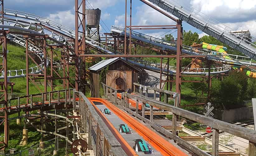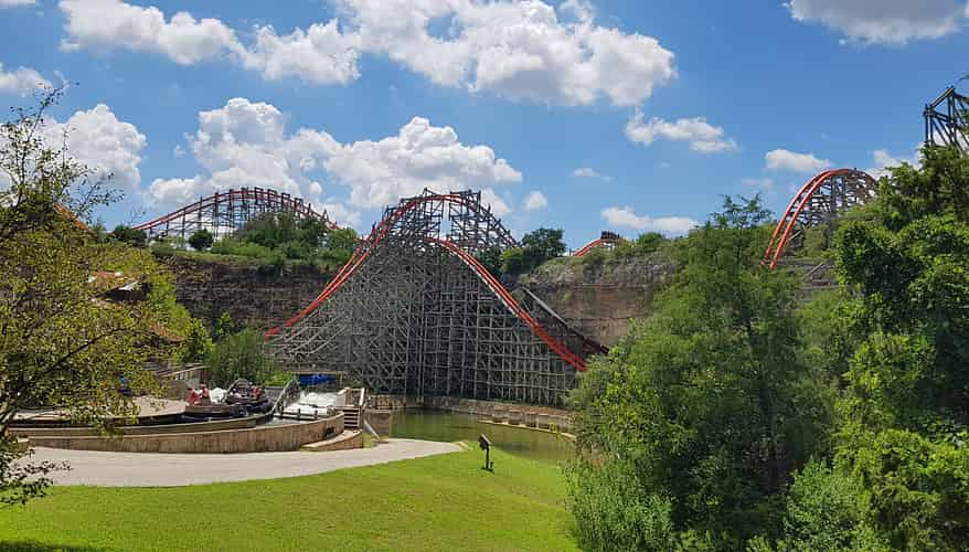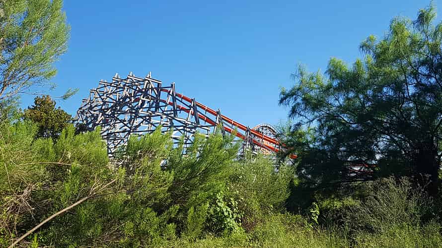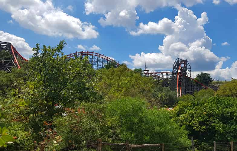 Iron Rattler is a renovation by RMC on the parks original "rattler" coaster, transforming the ride with new steel "iron horse" track that allows for more extreme manoeuvres, and even an inversion.