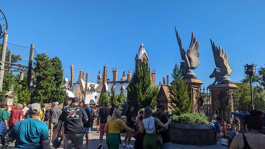 Flying pigs at the gates to Hogwarts.