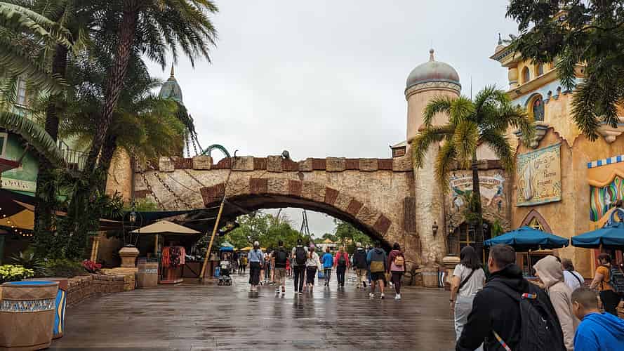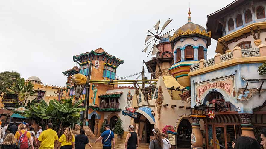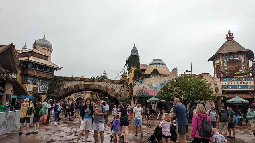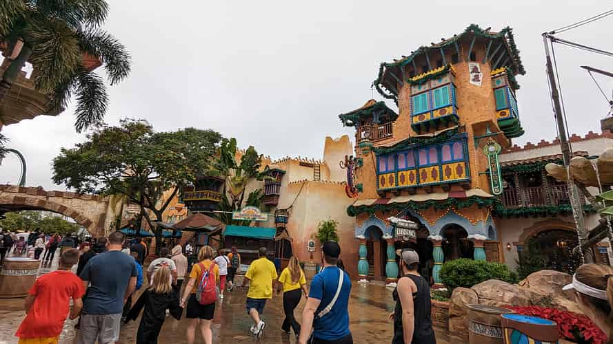 Port of Entry spills out into a plaza where you can choose to turn left or right an make your way around the loop of the park.