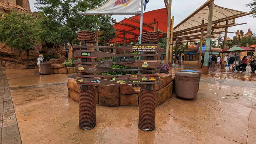 Themed height markers at the front entrance to the park.