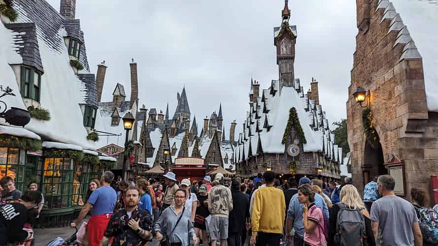 The town square of Hogsmeade.