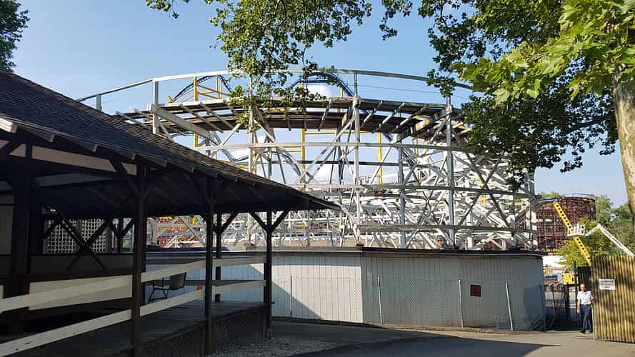 Racer with Jack Rabbit in the distance. Perhaps only Blackpool Pleasure Beach in the UK has an equivalent collection of classic wooden coasters.