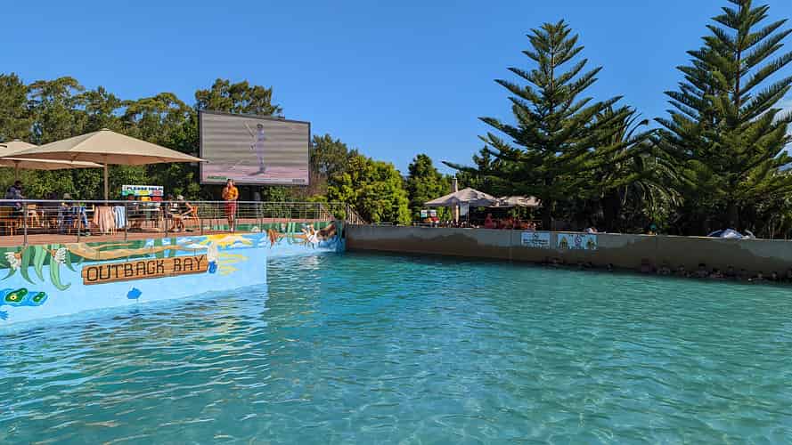 The wave pool features a big screen for "Dive in Movies", but given our visit was on Boxing Day it was being put to good use to broadcast the Boxing Day Test.