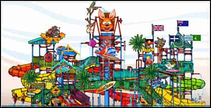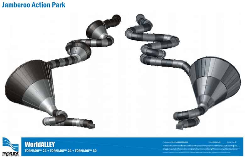 3D projections of the The Perfect Storm (left) and Funnel Web (right) slides from manufacturer ProSlide.