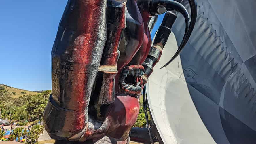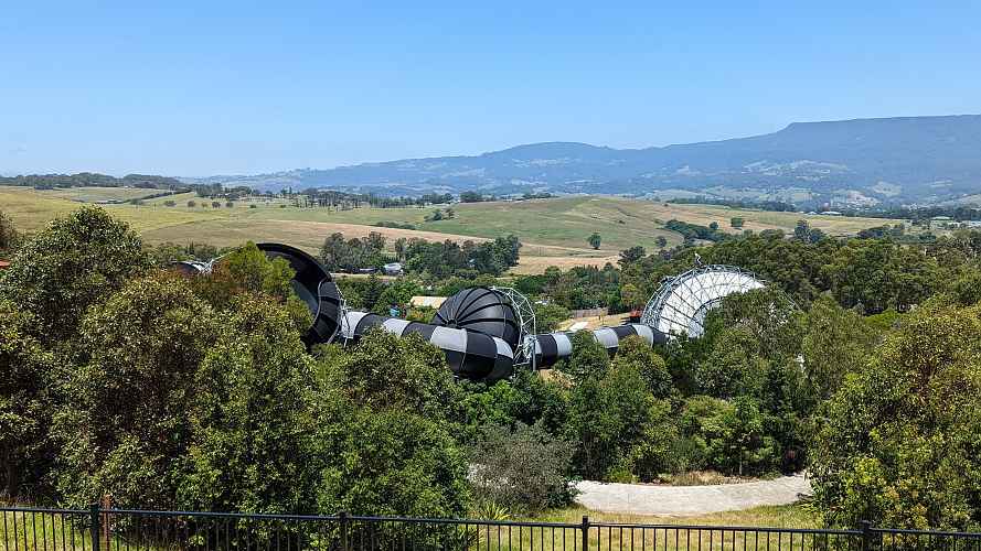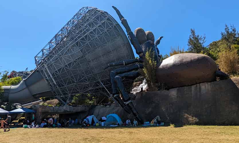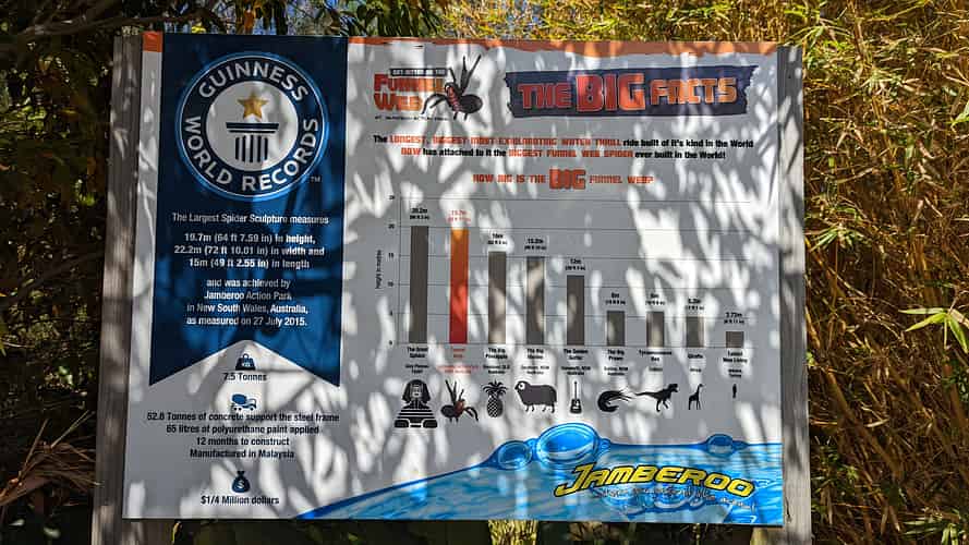 A year after the attraction opened, the park later added a giant funnel web statue overlooking the ride.