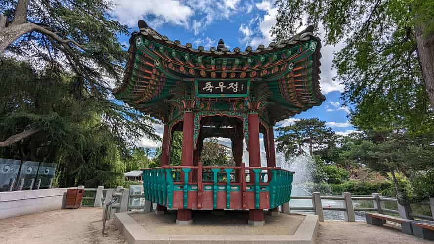 Pagoda in the Korean garden at Jardin D'acclimatation.