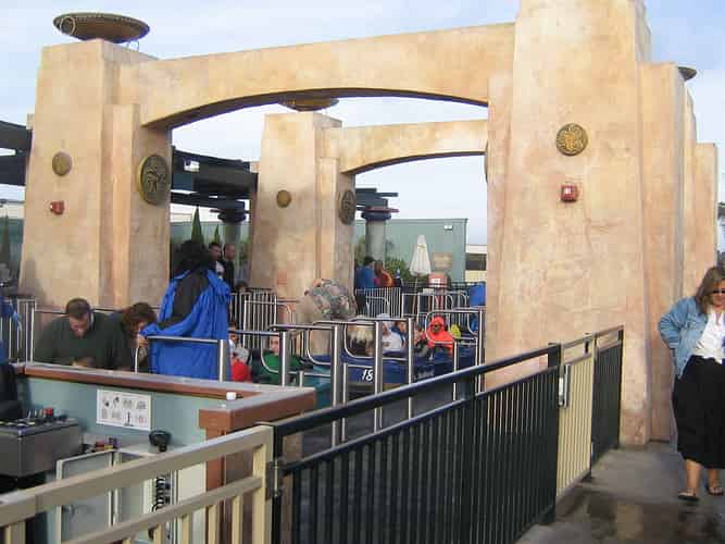 The first drop is much like any flume ride. Following this, the boats leave the track, and float along a slow moving flume section, into the archway under the drop.