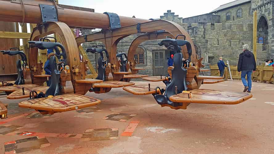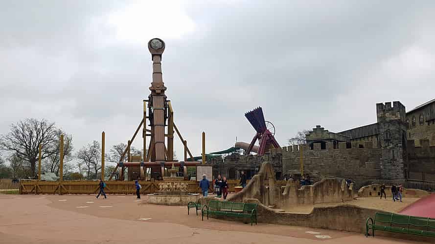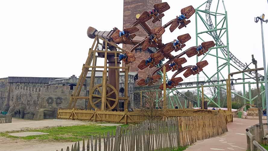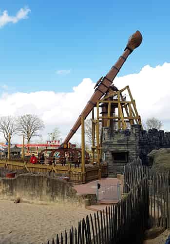 The ride is themed like a giant rock catapult.