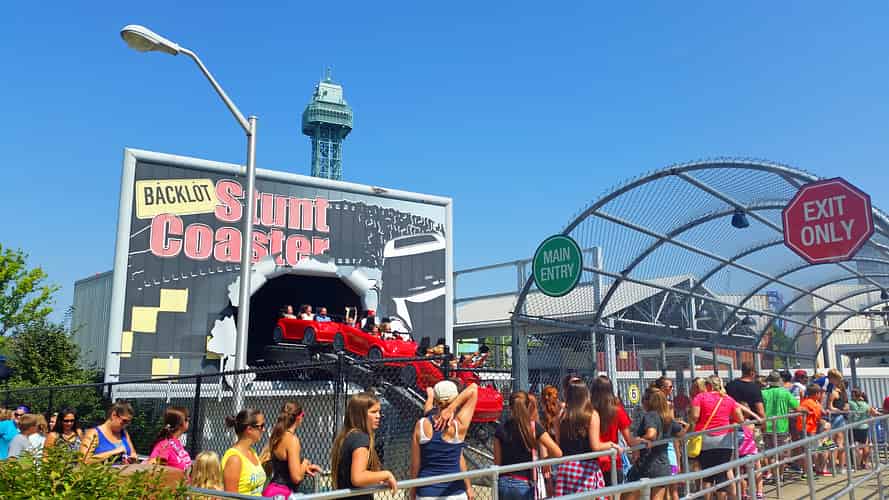 Backlot stunt coaster is a family oriented ride which takes riders through a Los Angles style action movie set.
