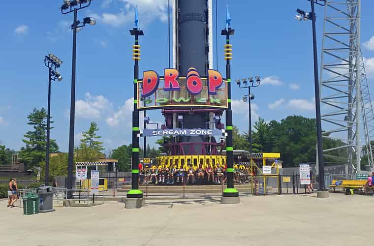 Drop Tower is a "Gyro Drop" ride. So called because instead of using fixed drop cars, it features a ring of seats that rotates to provide a panoramic view.