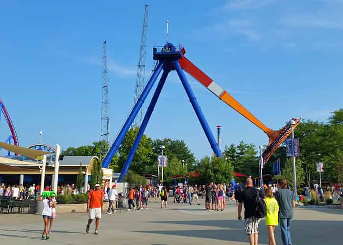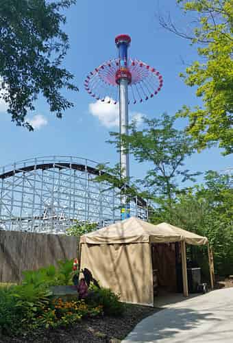 Windseeker spins guests around high in the air with only a lap harnes. The experience certainly feels very exposed.