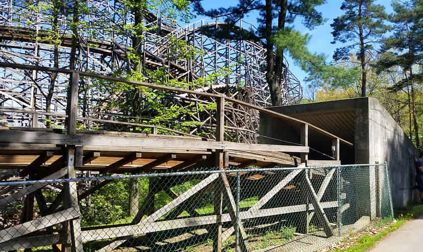 The ride continues with a few more turns and dips, with plenty of "headchopper" moments with the wooden structure.