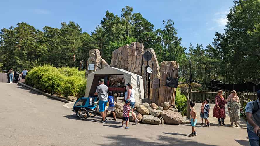 The entrance is themed like a wildlife tracking station.