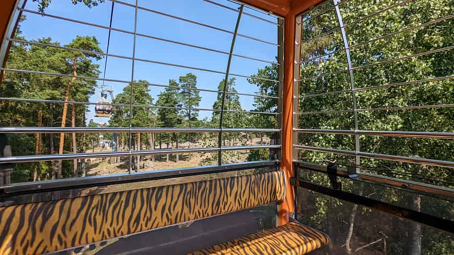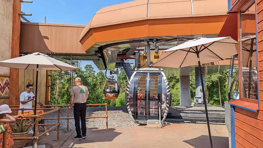 The ride takes guests on an aerial gondola ride above the open range animal enclosures.