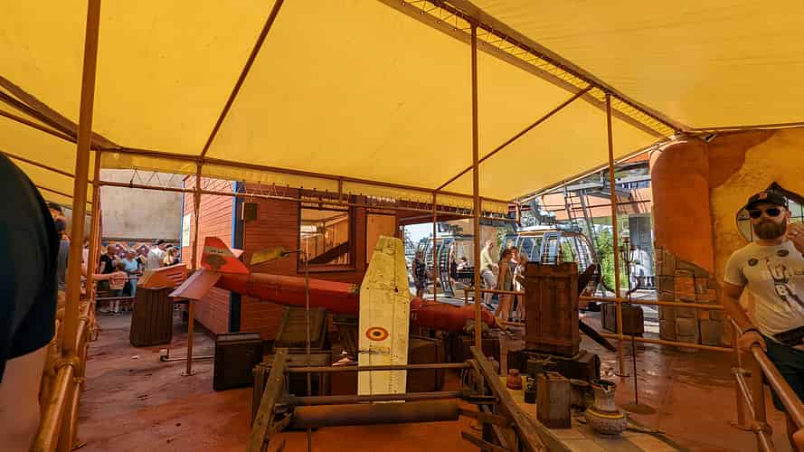 A limitation of cableways is that they can normally only turn in one direction, so the layout crosses over itself multiple times in a pentagram shape.