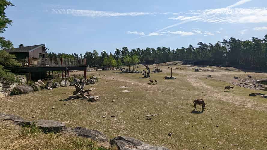 Savannen is a sprawling exhibit with an elevated pathway along one side.
