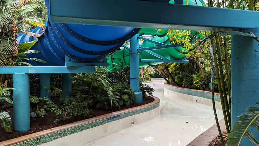 Both slides passing over the Kopiko Wai lazy river.