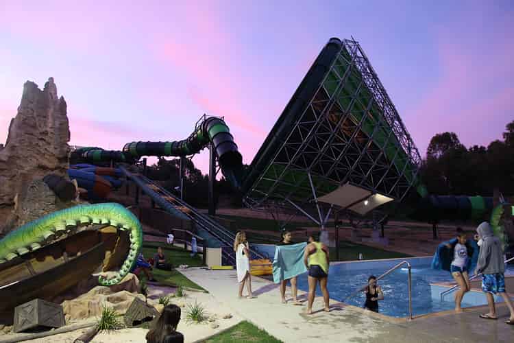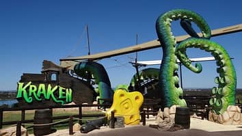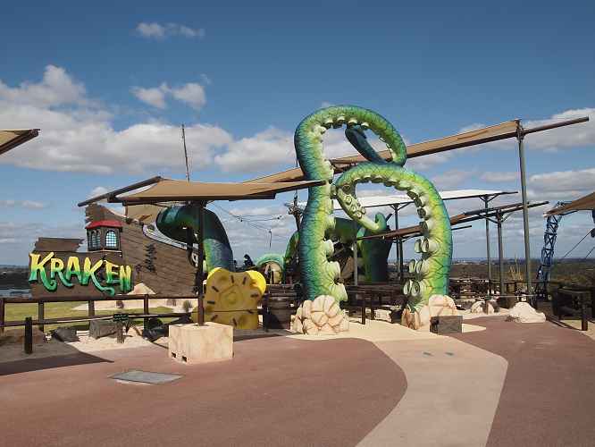 The water park area is a major draw of the park, given Perth's climate. It's a living time capsule of sorts from front to back, with the Wahoo Speed slides from 1985, the Tidal Wave racing slide from 2005, and Sea Serpents from 2006, and finally 2015's Kraken.
