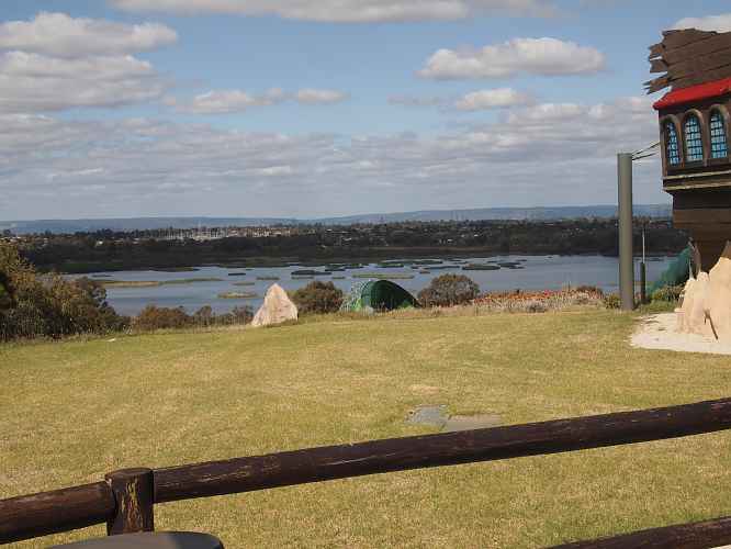You can get a sense of the elevation change this ride achieves, with the tip of the funnel just visible, and Bibra Lake beyond.