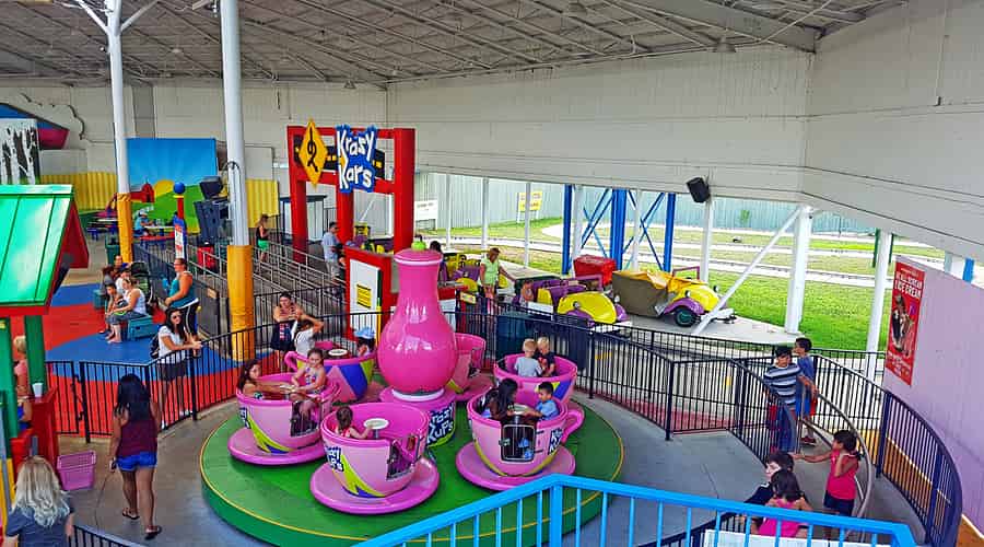 Krazy Kups and Krazy Kars are under what appears to be an old show arena.
